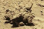 Doney, I think the rock preparing to take off is in fact a mutated bird. I believe there was an atomic catastrophe on Mars surface. The species that used to live on Mars either left the planet or mutated. Here you can see the rock is really preparing for taking off.