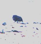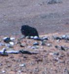 Hi Goggog, I dont know what to make of this. It is probably a shadow, but i see an earth-like mammal, eerily resembling a buffalo/wolf hybrid. I can even see a set of eyes which look like they are glowing! Hopefully somebody who is more talented than myself with colorizing etc. can better decipher this anomaly. In my image I adjusted the light/shadow levels.