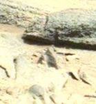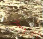 This reminds me of insect activity here on earth. Looks like some little critter has been digging. I've outlined the tailings from the holes and circled what could be an insect.