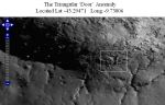 All that I have used on these slides is Paint and Powerpoint a little magnification and a little increase in the contrast. The anomaly sits to the lower right edge of the NASA the above image. (A guide map is supplied on the top left of the 2nd slide) Usually when comparing the M images to the LRO Act React site I have to turn them 180 degrees and sometimes flip them horizontally. I havn't done this on this particular occasion because I want the observer to go and check out the same image for themselves. Please let me know what you find because this one seem's too 'far fetched' (even for me). From one perspective it looks like a hollow cone-like structure, from another it looks like a reptile and from the third it looks like there is a series of symbols or letters written along its side. There are a couple of triangular anomalies to the left of the main anomaly which have been duly noted.