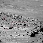 Hi Feerdinand, I have looked over this entire series many times and never spotted that. I see what you mean. It almost looks like a dried up alien skin laying there on that rock. The whole area is riddled with anomalies. Have a look at the sols before and after and all the different cams too. It's amazing what you can find.