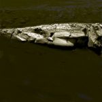 I believe major pieces of these crashed craft are still there, lying on the surface of Mars, and that their impact created these huge craters and shattered these hulls over many acres if not miles of debris .. a regular Roswell revisited. As for rdunk's lizard-man, it need be noted that all major cultures of early history, report it was these serpent-lords who brought them all their science and culture, usually after a great flood. And these were their sky-gods of old. So, there is a high probability that these great ships were piloted and manned or crewed by some such entities who were identified with the reptile personification or insignia. One seeming contradiction however, is the thickness of the stone to the left-rear, as it is 2-3 ft in thickness, thus the lizard-mans rock should be of the same thickness? Then again, there is the outline , and the ' shield' to contend with in the equasion. I cannot ' prove ' this either way, but I tend to believe there is indeed ' something ' human-shaped as present in the picture as rdunk contends. I hope this has been an interesting and fair evaluation of this strange phenomena for now, perchance a future deduction or find will make it all the more clearer to us. -Morbius