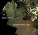 Funny images.. Green tint ;) Guess from what? ;) theres a reason it cant be replicated on white parts of Curiosity on Mars. Notice the tint is there too ;) .. even on your insert with Mars.... GREEN= Flourencent lighting... I was a pro Photographer years ago...