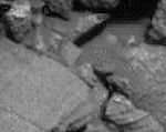 Morbius, that is an interesting feature. One can see that something is there, even at the smallest level of magnification. While it does have a look of somewhat typical pixelation, there are obvious unnatural characteristics. I have done a little looking across the area, and so far I see nothing else like it. But then I couldn't see the item TheWatcher was referring to either, behind it. One way of looking at the image shows us 3 or four faces, looking toward the cameras. :)