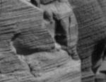 This post derives from a suggestion by rdunk, who directed my attention to further investigation of this site, and which is now presented here. I had done some work on this same site before, but above and to the left of the Pharoah. With the 'no. 2' and possibly 'elongated-head' statues ... which further drew my attention to the 'crystaline structures'. I had not looked over or commented on the Pharoah area much, even though it was but 25 or 30 feet away, such is the precision of focus some studies may require. The area to which rdunk had focused on is to the right of the Pharoah, around a cliff-edge, and which he considered could be a possible 'bust like figure', and to all appearances would initially seem quite plausibly so. I would also add that, after 15-years of anomaly study, this is one of the most messed-up, yet potentially active pictures, I can ever remember seeing. It has been really worked over, yet the many flaws in execution, albeit fairly easy to detect, are at the same time counterbalanced, as the less worked over areas are revealing of numerous, exciting, and mysterious anomalies .. everywhere. Well rdunk, y'al, lets dig-in the spurs and git goin ... to see what's really out there ... in the Martian Badlands.