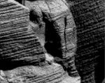Some of you may not have noticed, but there is another cape just behind the Cape this Egyptian statue is on. While it does not look as exciting and involved as the one we have been kicking around for some time, it does have some features, and at least one anomalous feature is worth some of our discussion. One reason it is worth discussing is, there is a somewhat similar anomaly on the face of "our cliff", just down below the Egyptian.