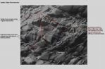 1. This location is found about 2/3rds of the way up, on the right end of the escarpment, as indicated, and includes arrows to a reptilian (?) figure on a ledge, a soldier with vest, and rdunk's initial 'bust like' find ... which now appears to be a tunnel-entrance. Yes I know, at this point some may slam the cover shut, yet those viewers who are really open-minded sincere seekers might also continue to examine and ponder this submission, and then draw their own conclusions as to what we have, or don't have, here.