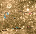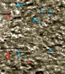 This cutout was taken from the lower right corner, or, I like to refer to this area as the lower east side, Kuiper Crater, Mercury. If you are observant, you can pick out signs and faces even though they are not very clear. Some structures are very clear, especially the domed building on the right. Lighted street traffic flows around center square, and moves through bridges. I probably put too many arrows here, so check out the original photo from link listed on previous post.