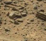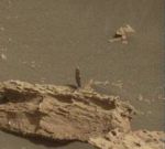 There may be a problem there because both are the Right Mastcam, so it depends if they were taken very far apart in time. If they were several minutes apart is there a difference in perspective? If not could it be suspended? If not it has to be something it rests on.