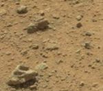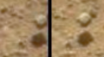 The levitating rock is a really intersting find, and the supporting images are wonderful to make the find all the more substantial. It looks like a left and right camera shot and it does not seem to have moved if you look at the distance and positioning compared to the whitish rock at 7 o'clock. It does seem to have areas protruding from the surface of the round shape that are also apparant in the shadow (IMHO).