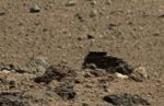 The fourth is of a rock that's hollow or curved to make an arch beneath it - you can see inside - and just before it and behind the round lumps that look organic and to the right in the arch is an apparent creature standing on front legs with it's head to the side and an eye looking towards the rover. If it's an actual creature it has predators because it's eye is on the side of it's head for peripheral vision.