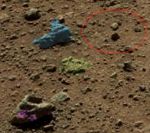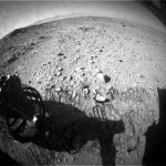 I hear what you're saying Xenon it could be some kind of noise or interference and they have the fish eye effect too. I just thought it was neat that on the same sol as Sapa's floating rock there was a saucer shaped thing in the sky. I have seen lots of different shapes and specks on lenses but have never found anything with such a perfect flying saucer shape. I know I get a little excited about this kind of stuff and jump to conclusions way too quick, but I did go through a bunch of the rear haz cams from before and after and can't find anything like it? ........... Yet. Maybe there is one out there...........still looking. Thanks for the feed back.