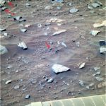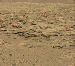 'Rocknest' From Sol 52 Location This patch of windblown sand and dust downhill from a cluster of dark rocks is the "Rocknest" site, which has been selected as the likely location for first use of the scoop on the arm of NASA's Mars rover Curiosity. This view is a mosaic of images taken by the telephoto right-eye camera of the Mast Camera (Mastcam) during the 52nd Martian day, or sol, of the mission (Sept. 28, 2012), four sols before the rover arrived at Rocknest. The Rocknest patch is about 8 feet by 16 feet (1.5 meters by 5 meters).